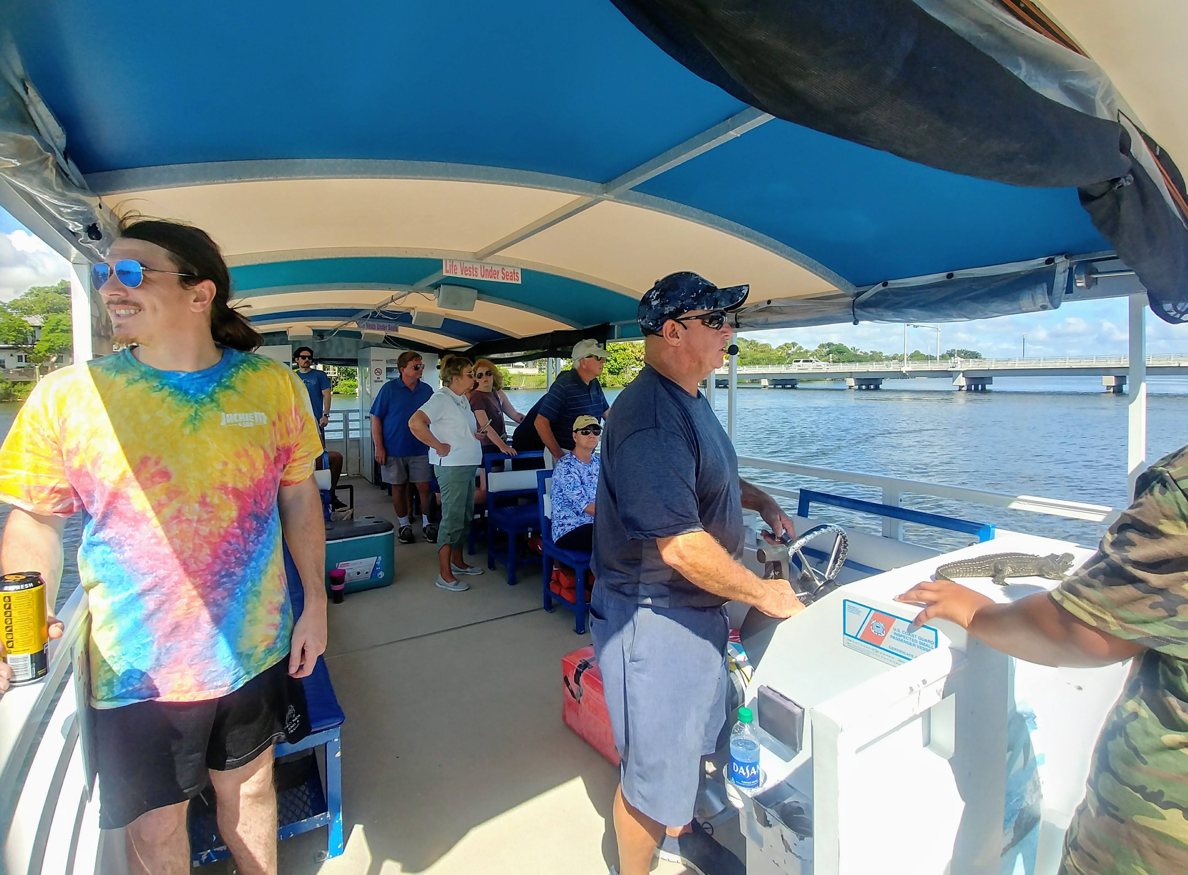 we drove under the Eau Gallo Causeway, Captain Bob told us all about